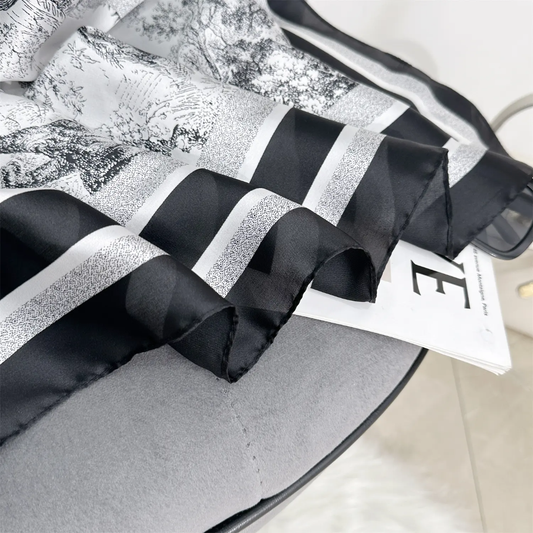 Offer priceG Chain Black Printed Silk Scarf