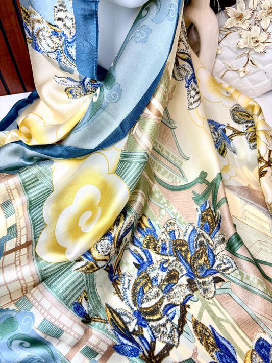 Offer priceBlue Orchid Bloom Printed Silk Scarf