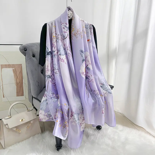 Offer priceLilac Flower Tree Printed Silk Scarf