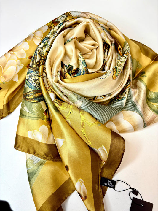 Offer priceHosta Gold Printed Silk Scarf