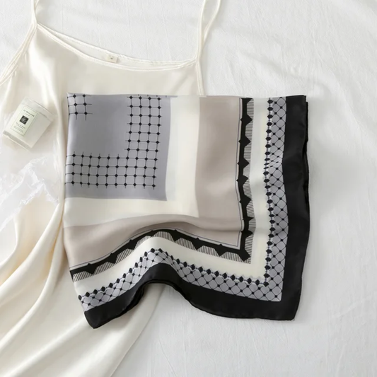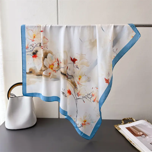Silver Petal Bloom Print Silk Square Scarves 70 CM