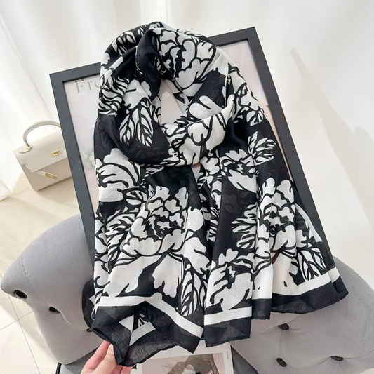 Offer priceBlack Rose Leaf Printed Viscose Scarf