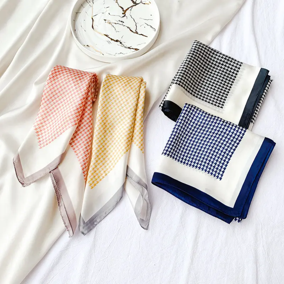 Shop Square Scarves 70×70 cm in silk-feeling fabric – smooth, lightweight, and elegant with a glossy finish. Perfect for versatile styling as a hijab, neck scarf, or accessory. Please note: color may vary slightly and stock availability may vary for all designs.