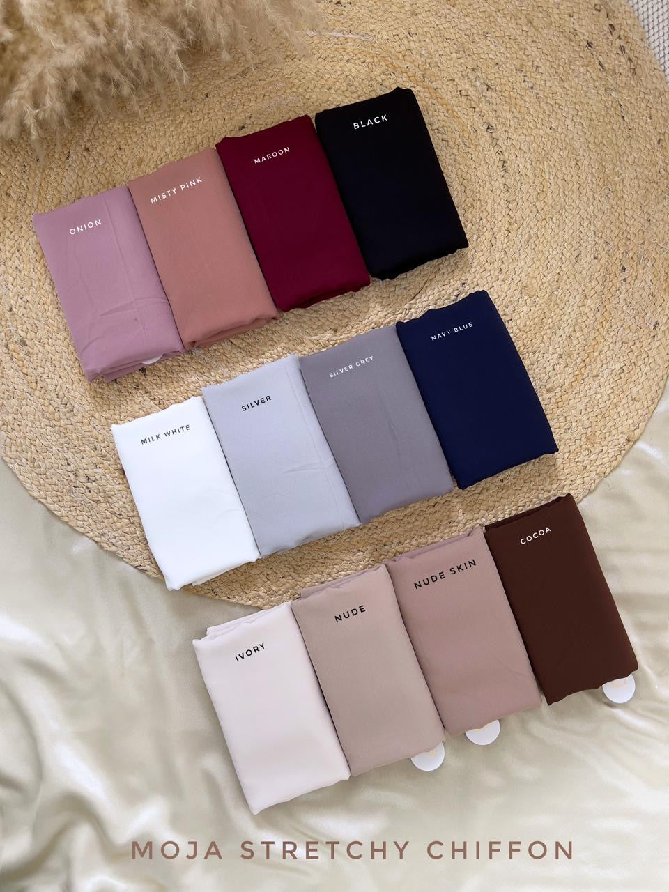 Enjoy the perfect blend of elegance and comfort with our Moja Stretchy Chiffon Hijabs. Made from premium chiffon with added stretch, these hijabs drape beautifully while offering a secure, non-slip fit. The breathable, lightweight fabric makes them ideal for daily wear, work, and special occasions — providing both style and ease in every wrap.